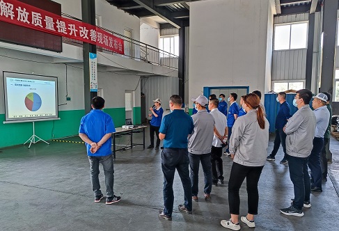 隨后,公司相關(guān)負(fù)責(zé)人就近期質(zhì)量問題,匯報(bào)現(xiàn)場整改措施。通過此次匯報(bào)交流,參會人員的看法和建議得到了充分溝通,極大提升了大家對質(zhì)量管理的重視。
